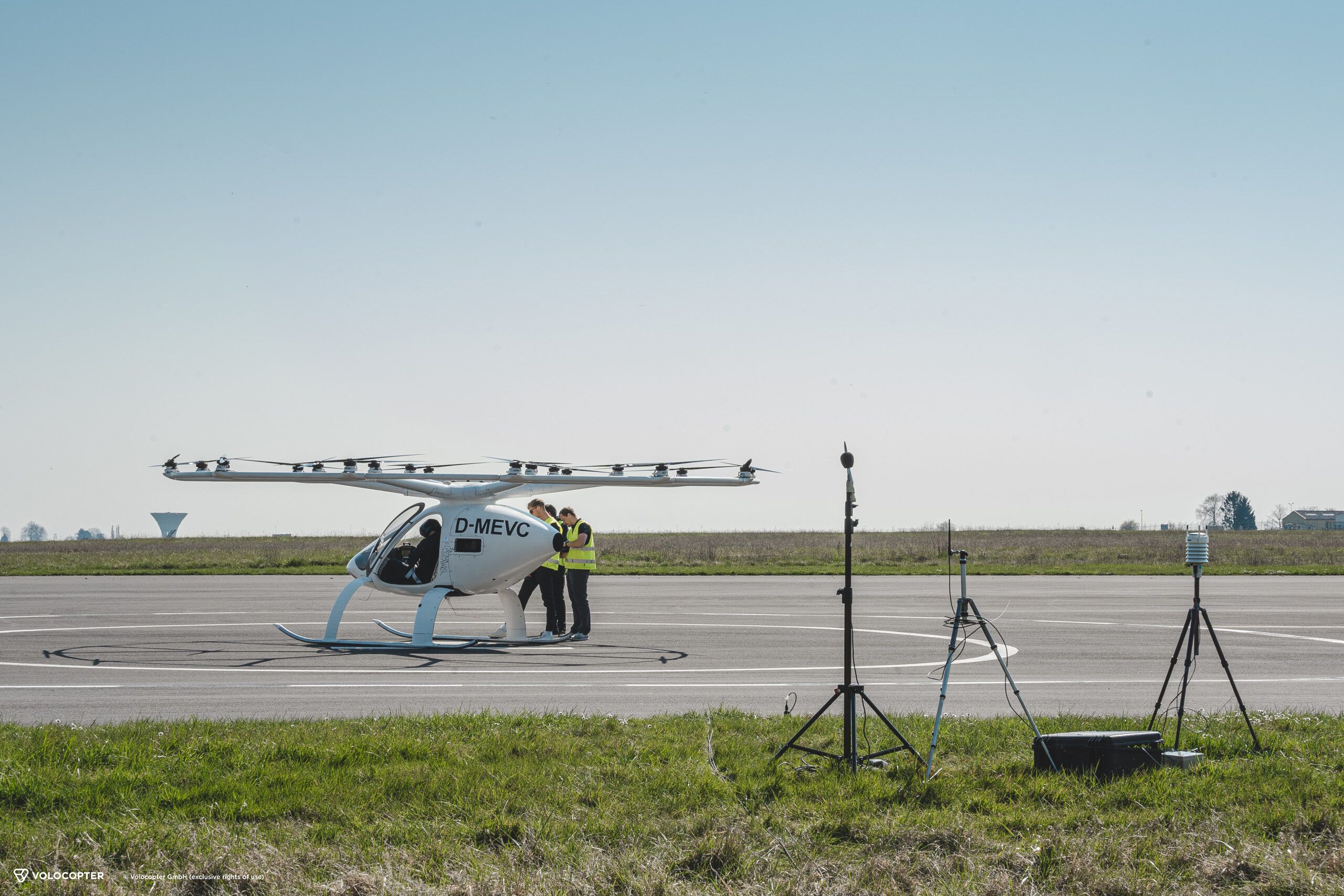 Volocopter’s full-scale testing prototype, the 2X, was used to perform successful flight tests at Pontoise airfield in Paris to measure the aircraft’s noise emissions. This data will be used by the company’s partners to shape the future of urban air mobility services in and around Paris.