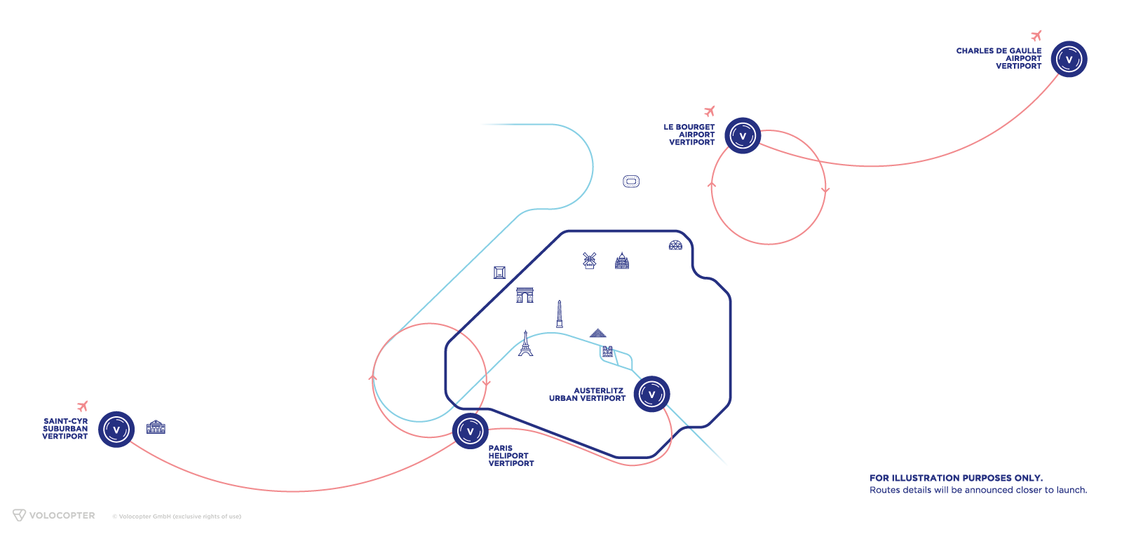 Operations in Paris will begin from five vertiports and will gradually grow to cover the whole Paris region over the next decade. VoloCity aircraft, which have capacity for one pilot and one passenger, will be flying at heights below 500 m and will not be audible from ground level in urban environments.